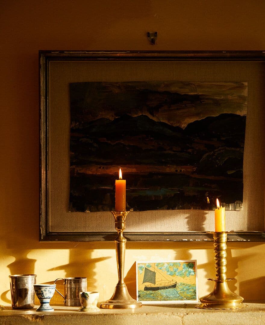 A match flares; the fizz of sulphur burns out into beeswax, soft honey and smoke. In the grate last night’s embers gently smoulder. Through the window overlooking the valley, ringing with gold, comes the sun, a fat slice of butter.