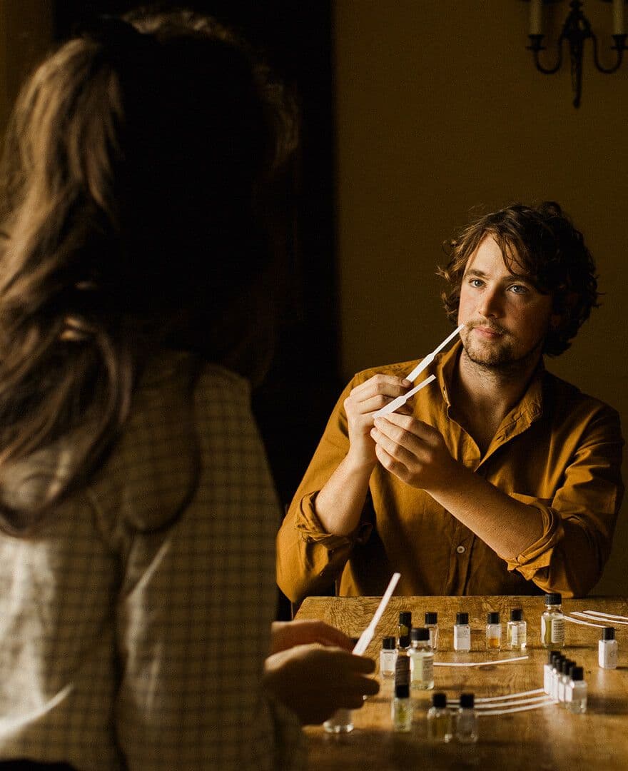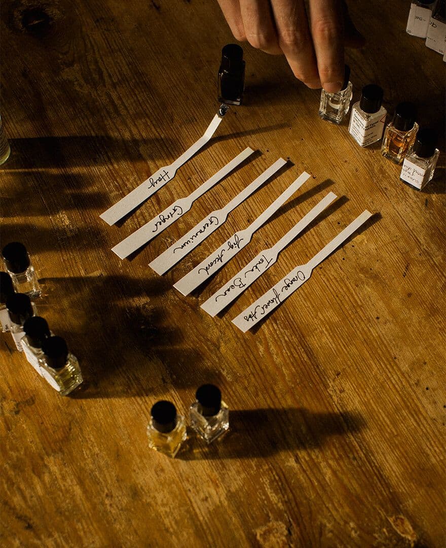 From here, Julius was keen to take the scent in a darker direction. To capture some of those embers in the open fireplace, the remains of autumn bonfires in the landscape. And so we turned to birch tar, an ingredient we haven’t used since Winter 21, with a distinctively smokey facet.
