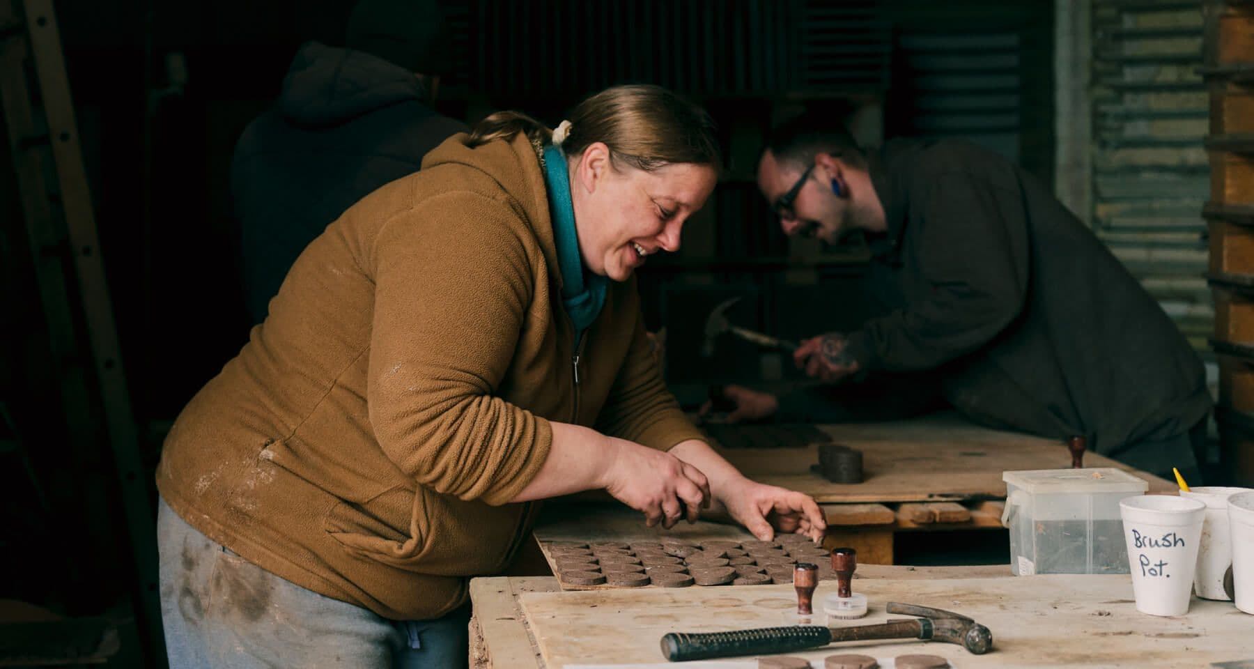In our search for a sustainable diffuser for our fragrances, we lighted upon terracotta as a traditionally used material that is kind to the earth - and from there worked with tilemakers Norfolk Pamments to develop our bespoke diffusion stones, handmade from Suffolk clay. We spoke to mother-daughter team Annie and Zoe to understand more about the process of making the stones - and spent the day with them at their small factory in Norfolk with photographer Kendal Noctor. Here are their words, and the photographs.